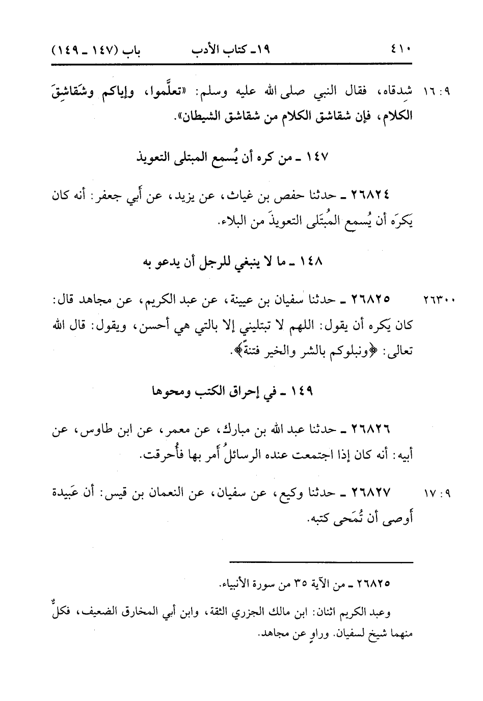 149- فِي إحراقِ الكتبِ ومحوِها.