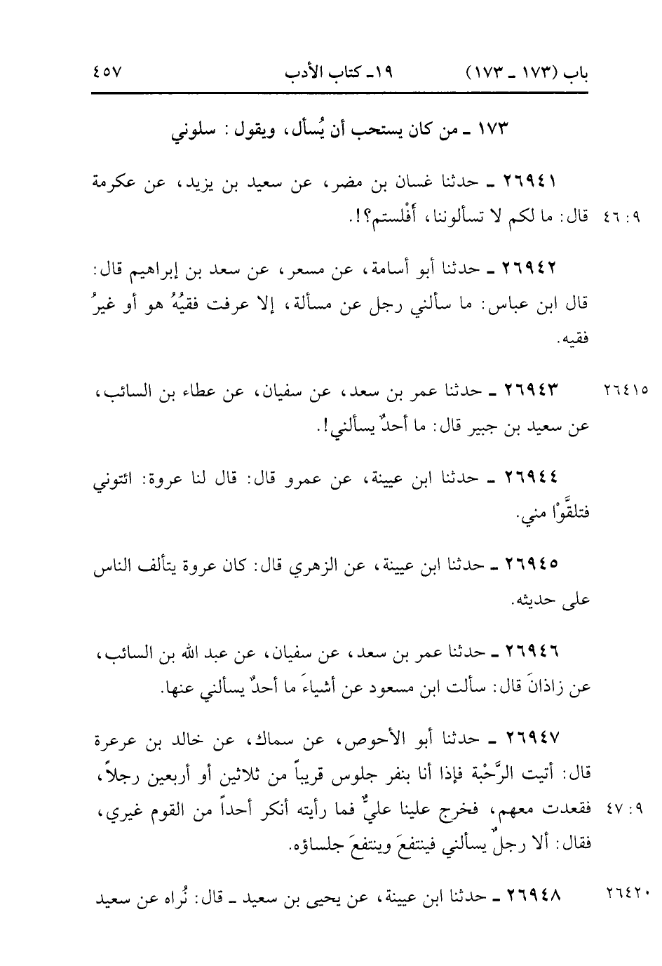 173- مَنْ كَانَ يستحِبّ أن يسأل ويقول : سلونِي.