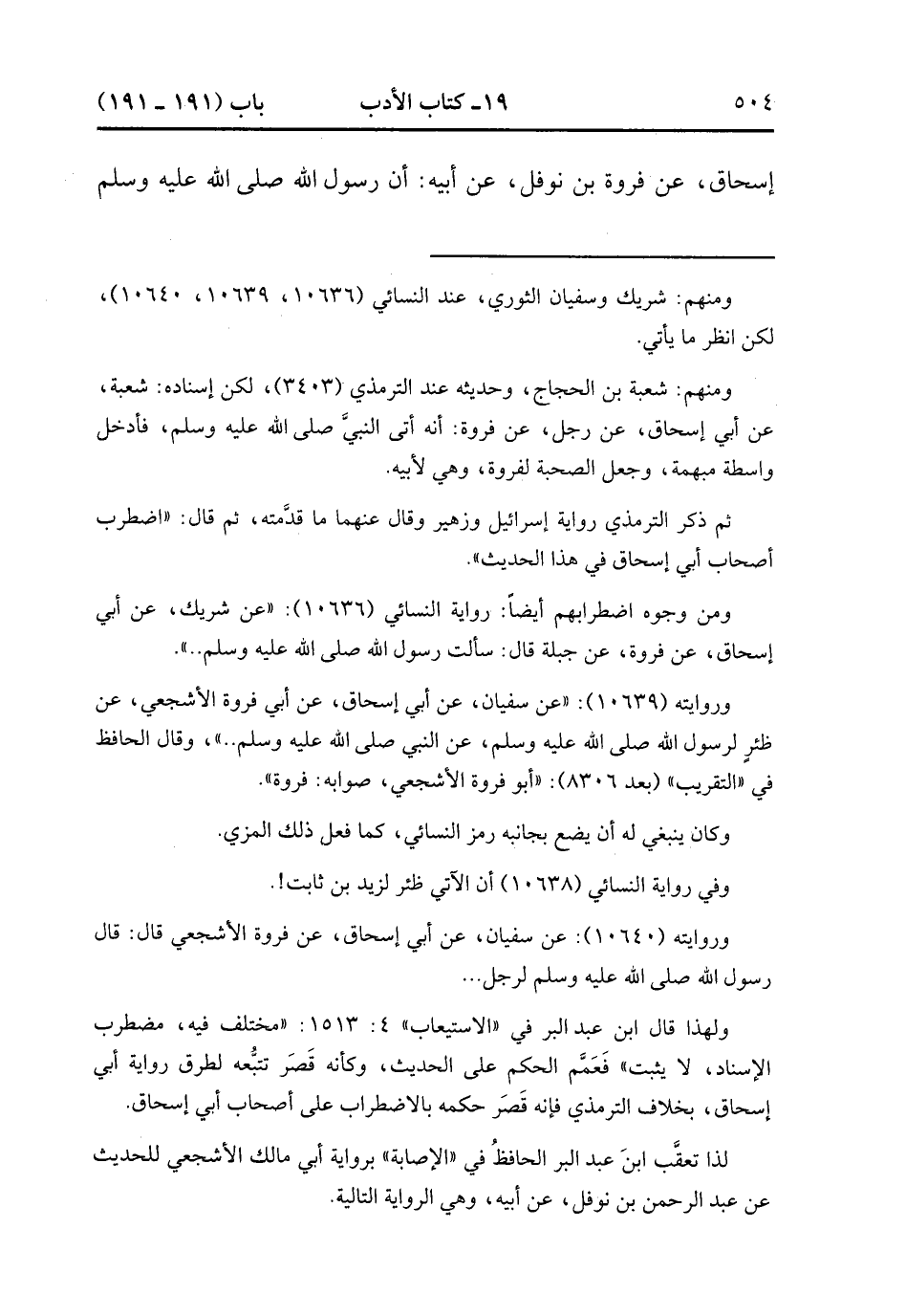 27059- حَدَّثَنَا الْفَضْلُ بْنُ دُكَيْنٍ , قَالَ : حدَّثَنَا زُهَيْرٌ ، عَنْ أَبِي إِسْحَاقَ ، عَنْ فَرْوَةَ بْنِ نَوْفَلٍ ، عَنْ أَبِيهِ ، أَنَّ رَسُولَ اللهِ صَلَّى الله عَلَيْهِ وَسَلَّمَ قَالَ لَهُ : مَجِيءٌ مَا جَاءَ بِكَ ؟ قَالَ : جِئْت يَا رَسُولَ اللهِ تُعَلِّمُنِي شَيْئًا عِنْدَ مَنَامِي ، قَالَ : إذَا أَخَذْت مَضْجَعَك فَاقْرَأْ {قُلْ يَا أَيُّهَا الْكَافِرُونَ} ثُمَّ نَمْ عَلَى خَاتِمَتِهَا فَإِنَّهَا بَرَاءَةٌ مِنَ الشِّرْكِ. (9/74).