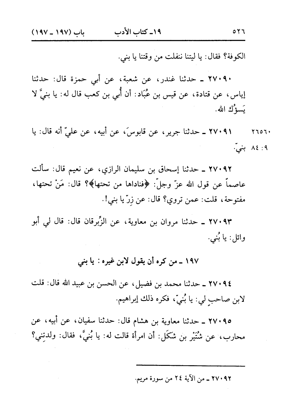 197- من كرِه أن يقول لاِبنِ غيرِهِ : يا بنيّ.