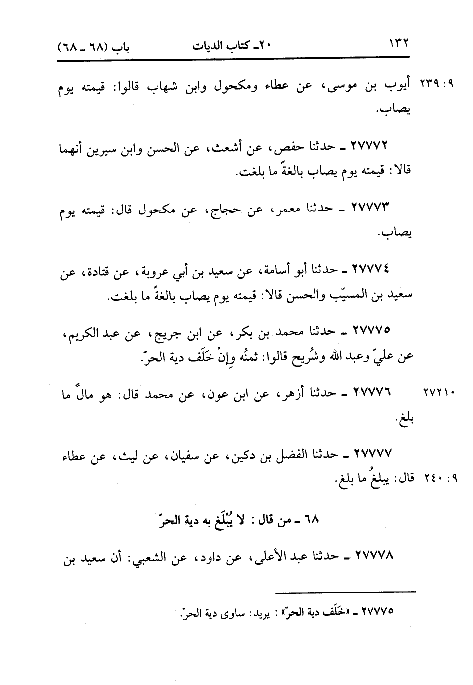 68- مَنْ قَالَ لاَ يُبْلَغُ بِهِ دِيَةُ الْحُرِّ.