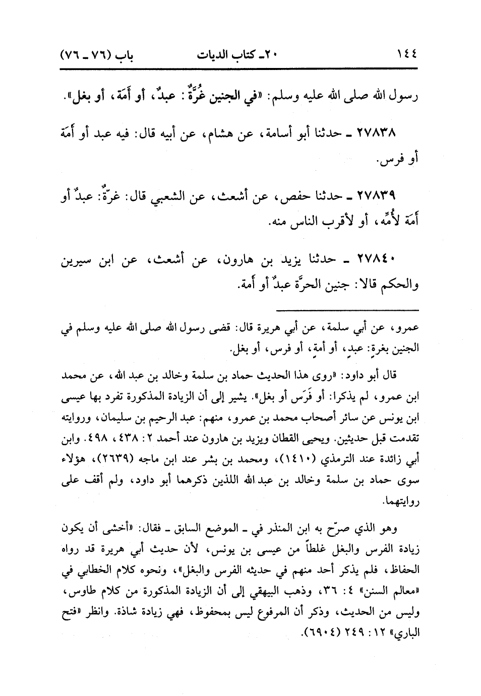 27840- حَدَّثَنَا يَزِيدُ بْنُ هَارُونَ ، عَنْ أَشْعَثَ ، عَنِ ابْنِ سِيرِينَ ، وَالْحَكَمِ ؛ قَالاَ : جَنِينُ الْحُرَّةِ عَبْدٌ ، أَوْ أَمَةٌ. (9/251).