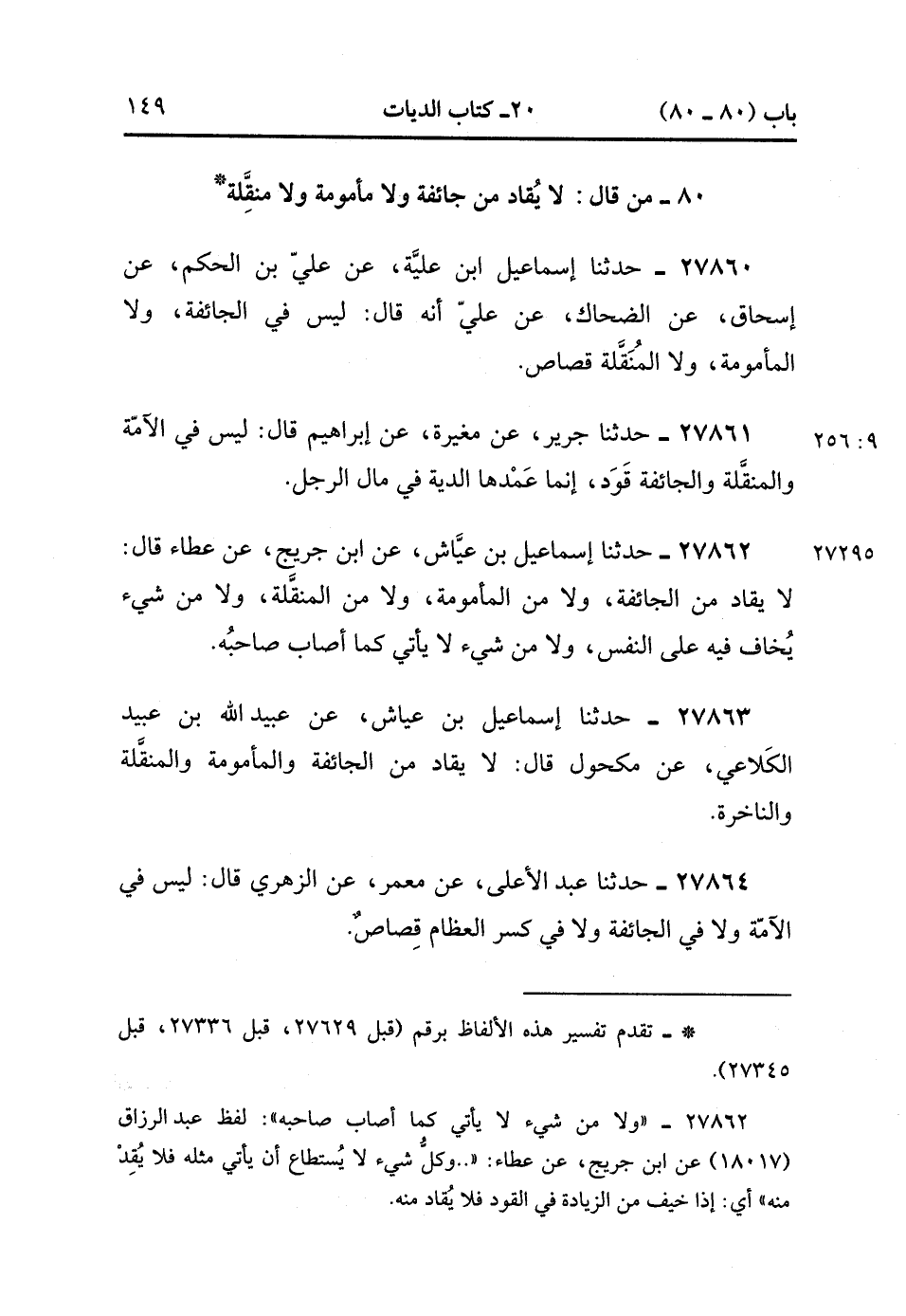 80- مَنْ قَالَ لاَ يُقَادُ مِنْ جَائِفَةٍ ، وَلاَ مَأْمُومَةٍ ، وَلاَ مُنَقِّلَةٍ.
