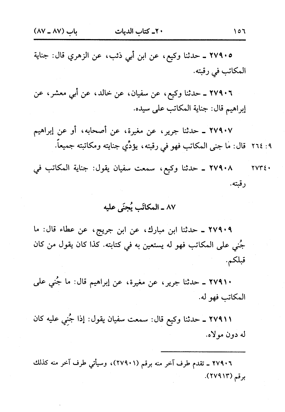 27908- حَدَّثَنَا وَكِيعٌ ، سَمِعْت سُفْيَانَ يَقُولُ : جِنَايَةُ الْمُكَاتَبِ فِي رَقَبَتِهِ.