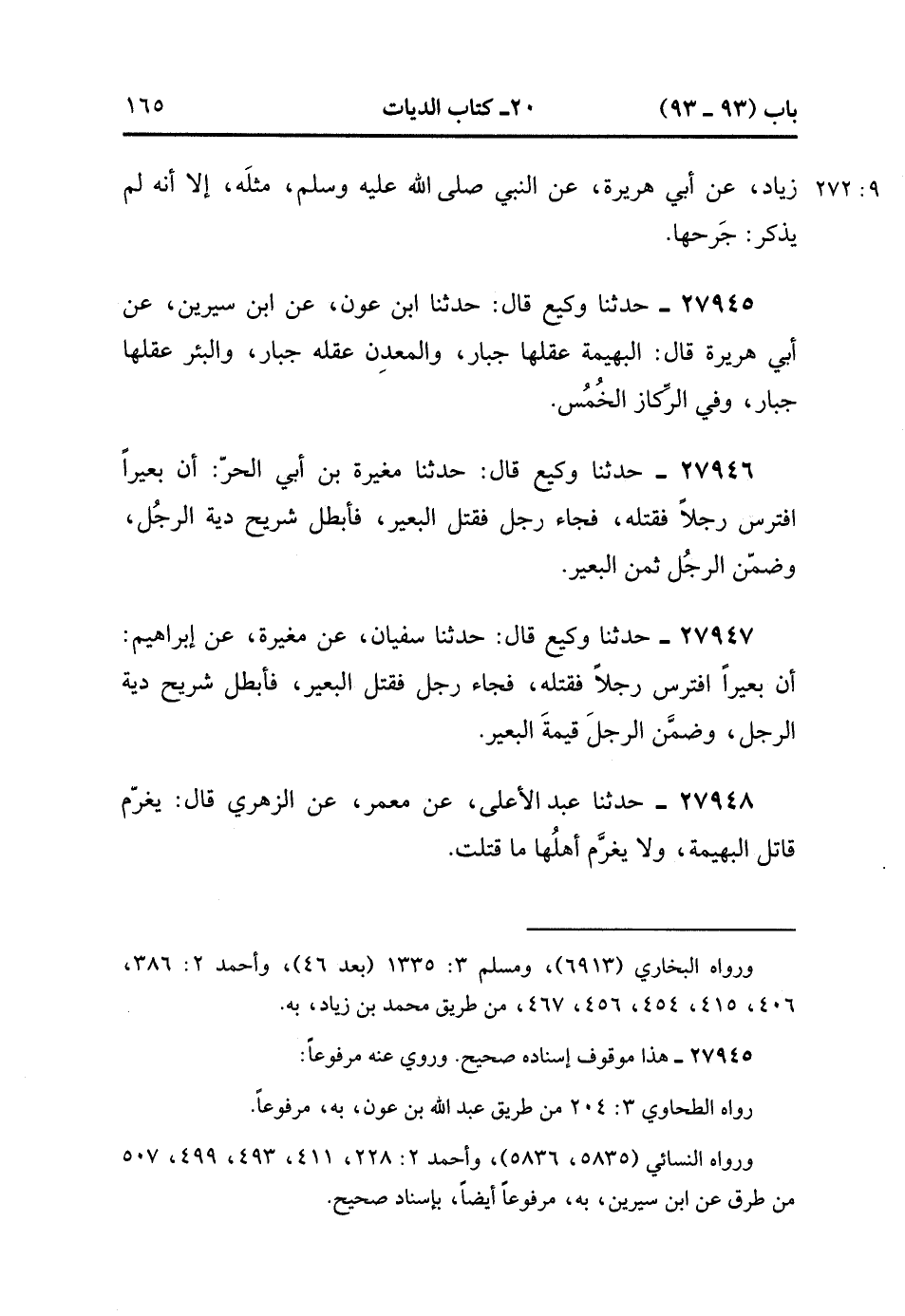 27948- حَدَّثَنَا عَبْدُ الأَعْلَى ، عَنْ مَعْمَرٍ ، عَنِ الزُّهْرِيِّ ، قَالَ : يَغْرَمُ قَاتِلُ الْبَهِيمَةِ ، وَلاَ يَغْرَمُ أَهْلُهَا مَا قَتَلَتْ. (9/272).