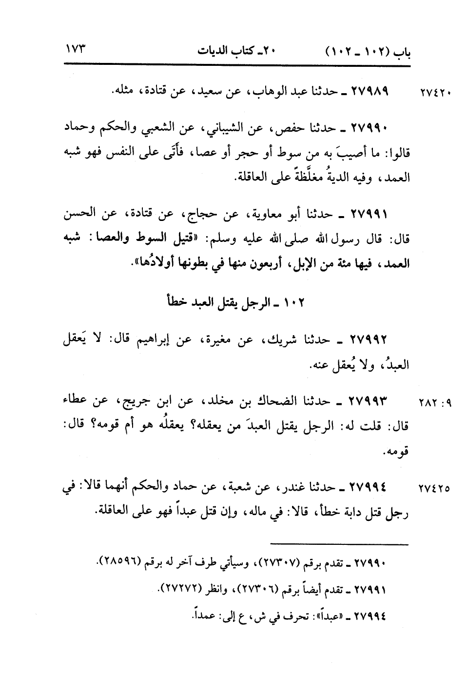 102- الرَّجُلُ يَقْتُلُ الْعَبْدَ خَطَأً.