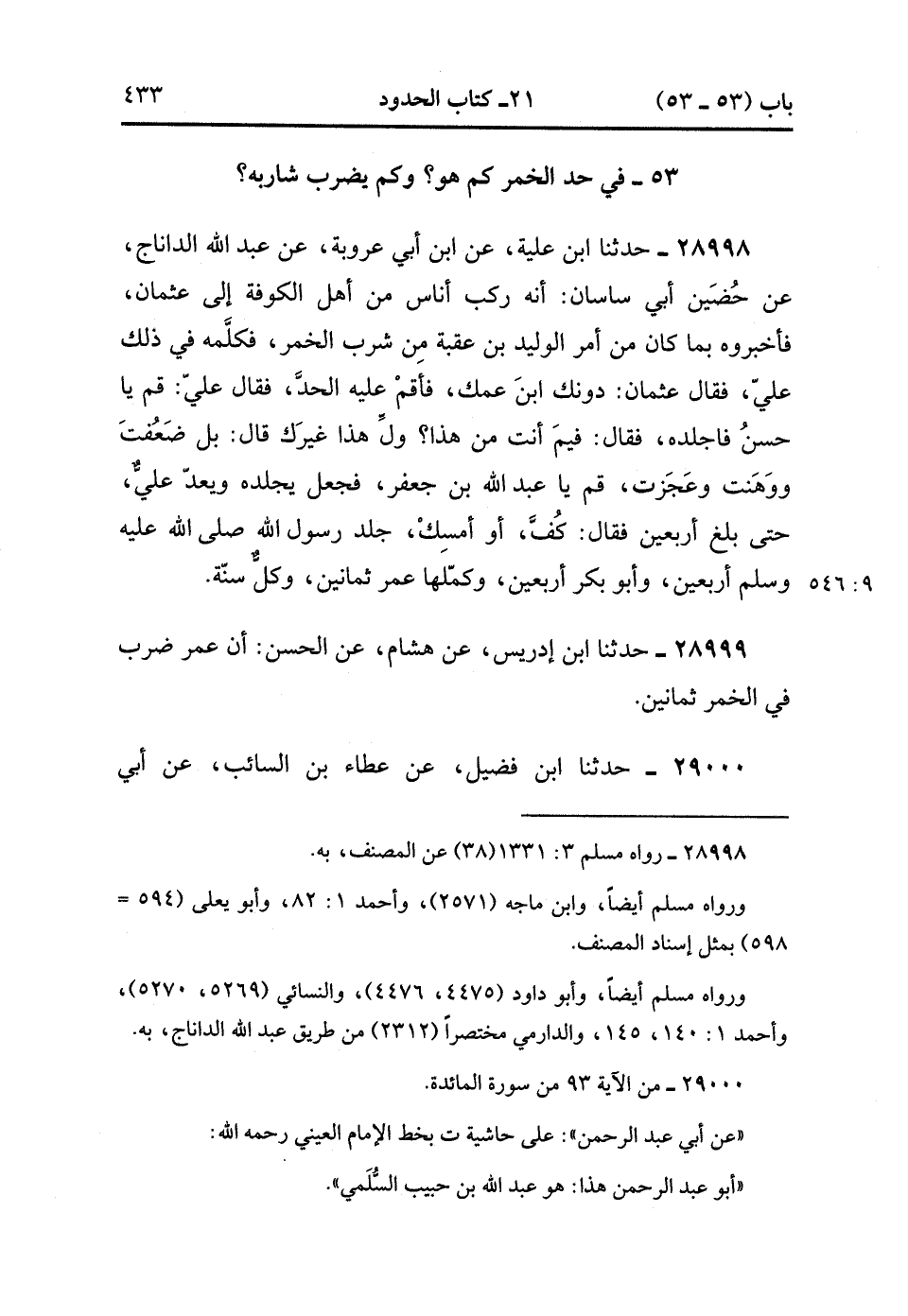 53- فِي حَدِّ الْخَمْرِ ، كَمْ هُوَ ، وَكَمْ يُضْرَبُ شَارِبُهُ ؟.