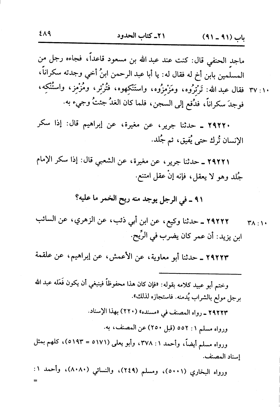 29220- حَدَّثَنَا جَرِيرٌ ، عَنْ مُغِيرَةَ ، عَنْ إِبْرَاهِيمَ ، قَالَ : إِذَا سَكَرَ الإِنْسَانُ تُرِكَ حَتَّى يُفِيقَ ، ثُمَّ جُلِدَ.