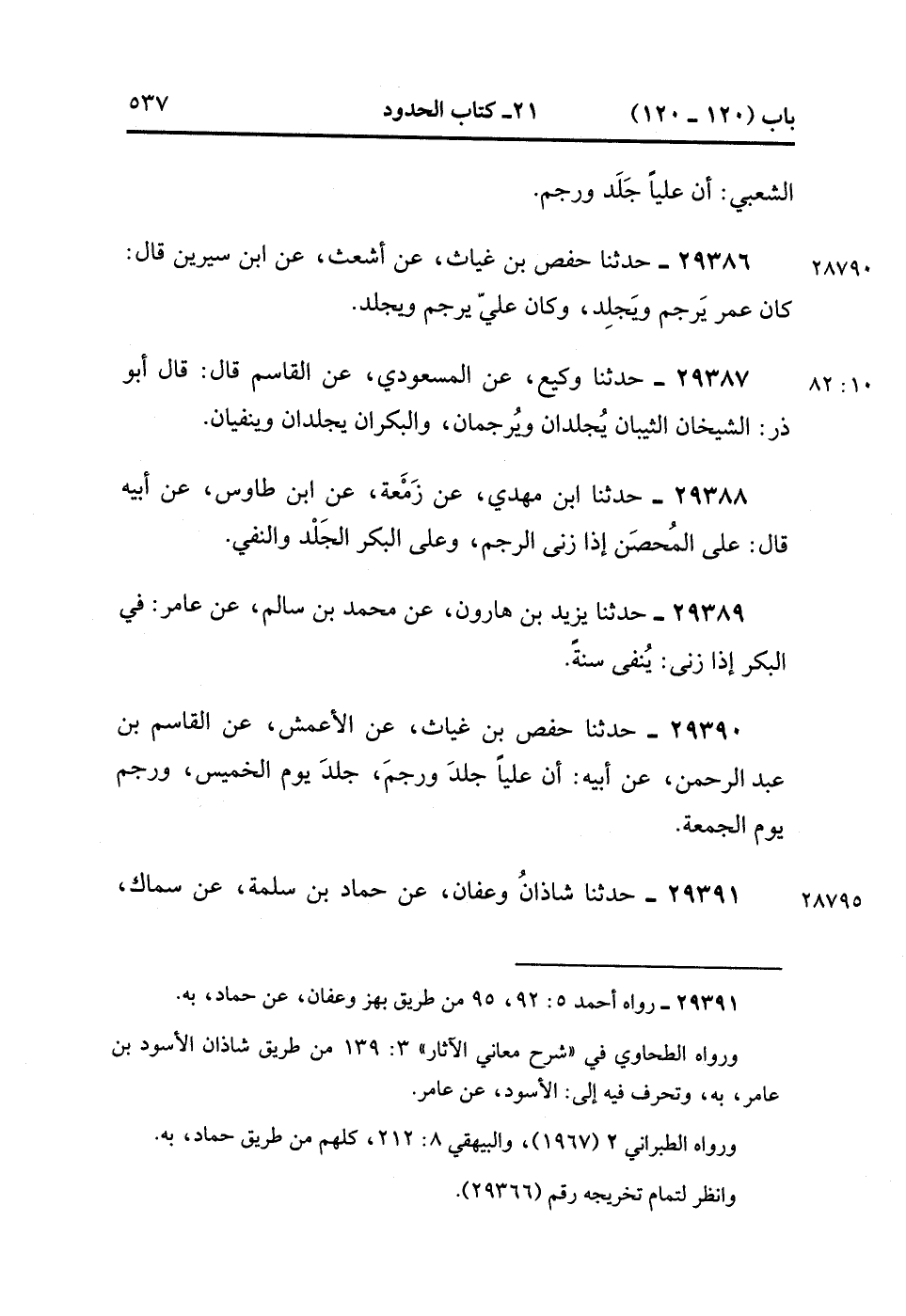 29386- حَدَّثَنَا حَفْصُ بْنُ غِيَاثٍ ، عَنْ أَشْعَثَ ، عَنِ ابْنِ سِيرِينَ ، قَالَ : كَانَ عُمَرُ يَرْجُمُ وَيَجْلِدُ ، وَكَانَ عَلِيٌّ يَرْجُمُ وَيَجْلِدُ. (10/81).