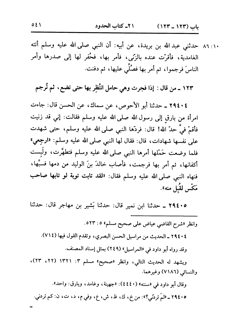 123- مَنْ قَالَ إِذَا فَجَرَتْ وَهِيَ حَامِلٌ ، انْتُظِرَ بِهَا حَتَّى تَضَعَ ، ثُمَّ تُرْجَمُ.
