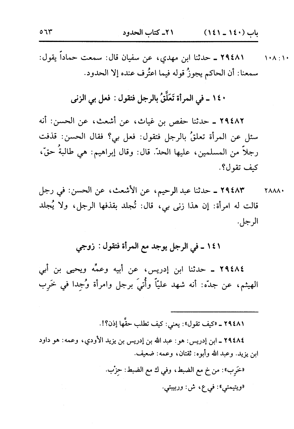 141- فِي الرَّجُلِ يُوجَدُ مَعَ الْمَرْأَةِ ، فَتَقُولُ : زَوْجِي.