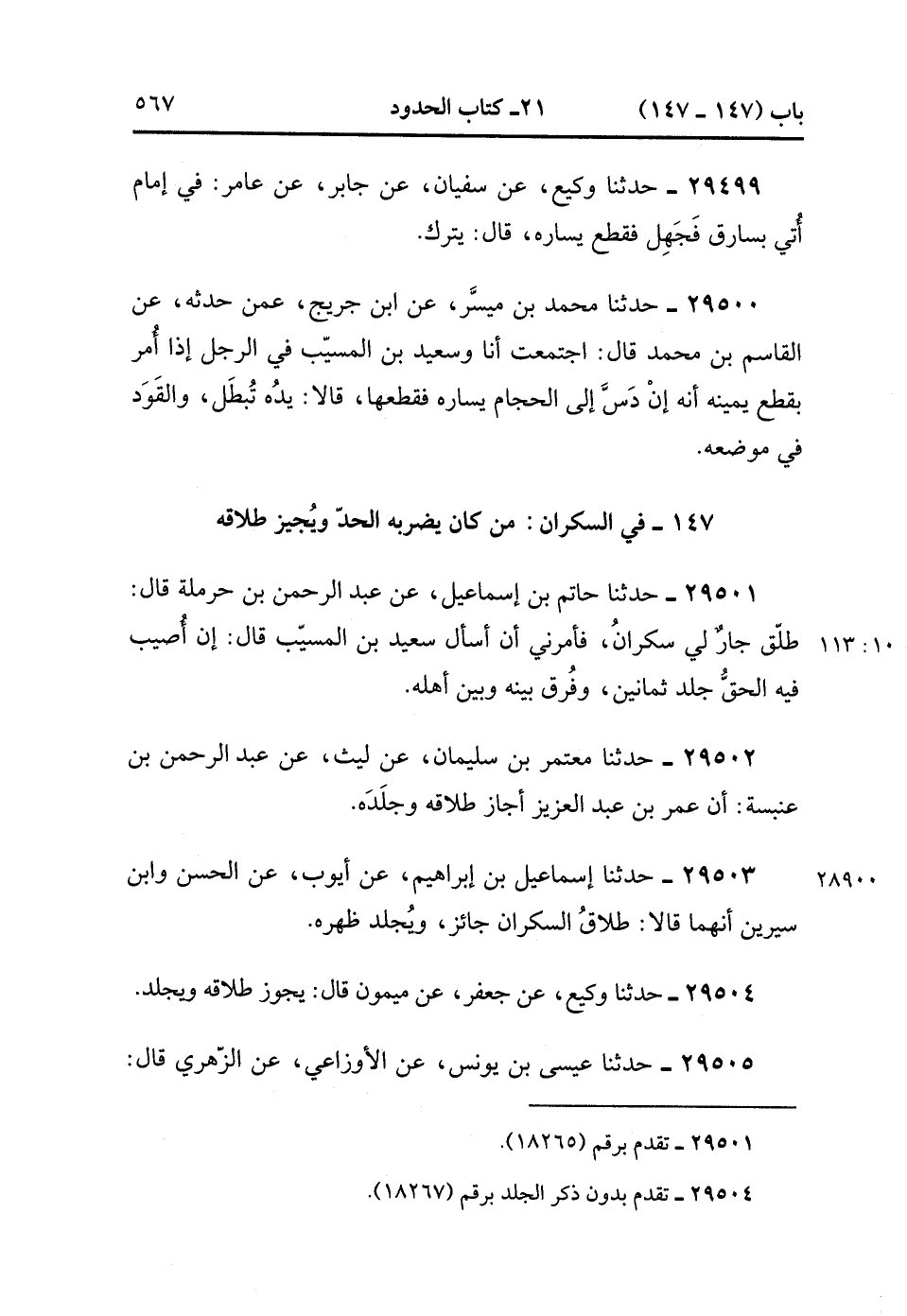 29505- حَدَّثَنَا عِيسَى بْنُ يُونُسَ ، عَنِ الأَوْزَاعِيُّ ، عَنِ الزُّهْرِيِّ ، قَالَ : إِذَا أَعْتَقَ ، أَوْ طَلَّقَ السَّكْرَانُ جَازَ طَلاَقُهُ ، وَأُقِيمَ عَلَيْهِ الْحَدُّ. (10/113).