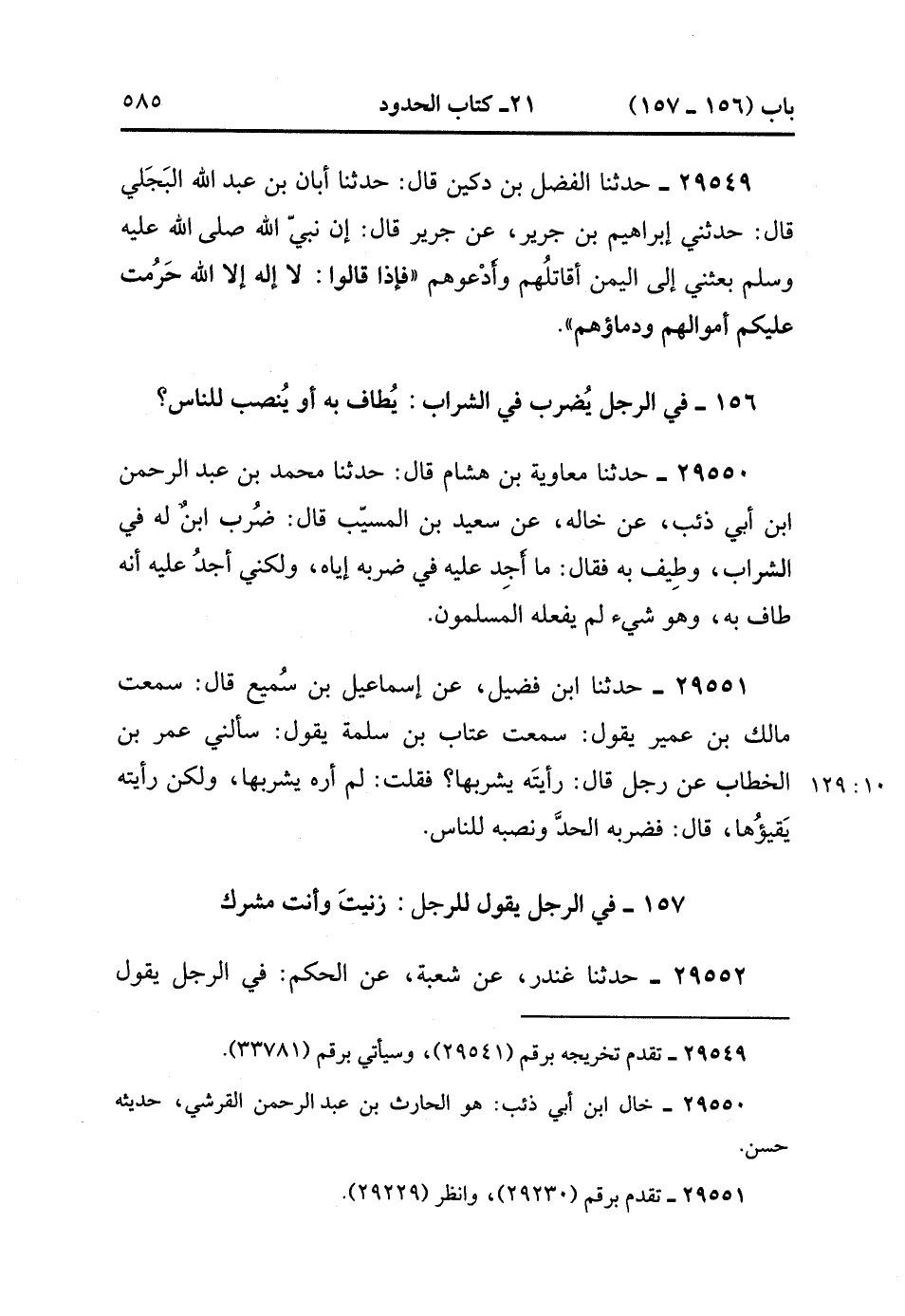 157- فِي الرَّجُلِ يَقُولُ لِلرَّجُلِ : زَنَيْتَ وَأَنْتَ مُشْرِكٌ.