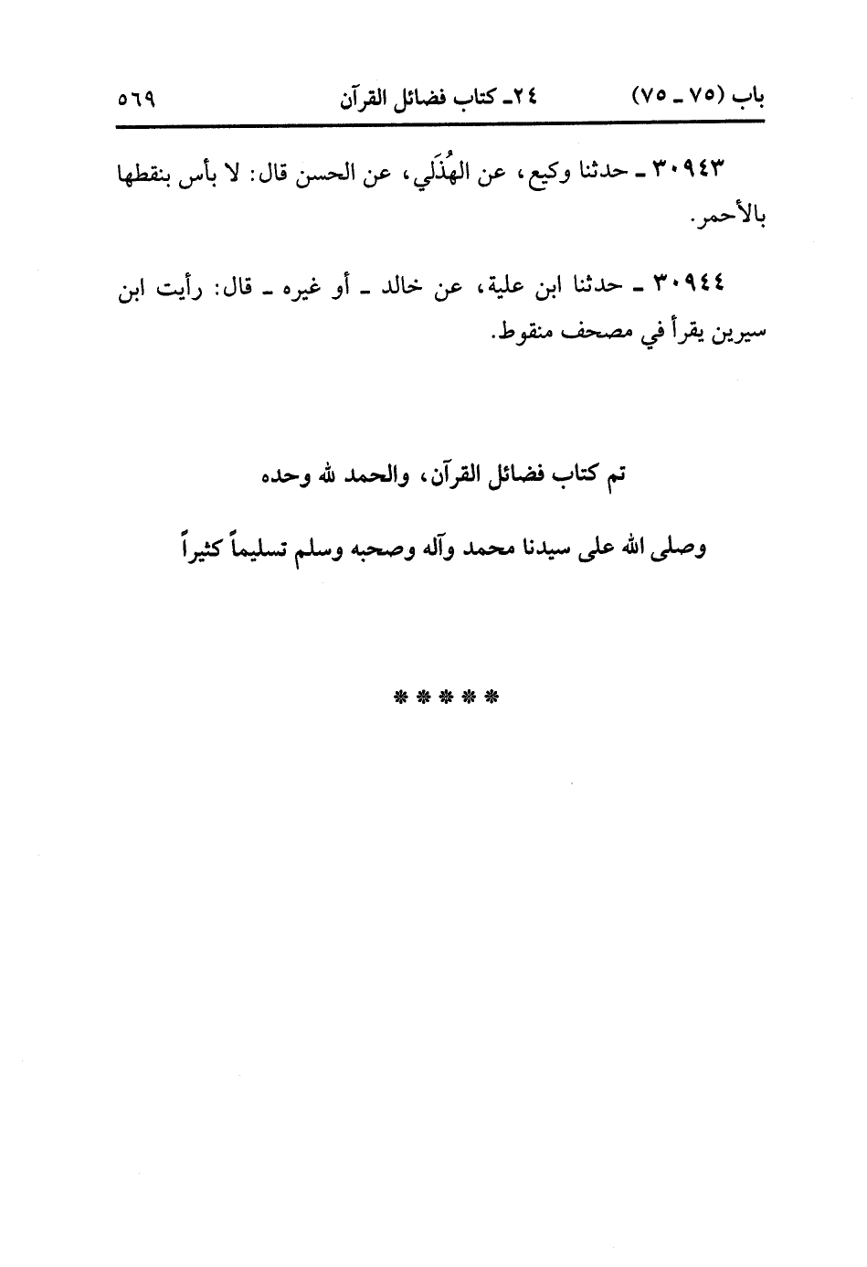 تم كتاب فضائل القرآن ، والحمد لله وحده ، وصلى الله عَلَى سيدنا محمد وآله وصحبه وسلم تسليما كثيرا. (10/565).