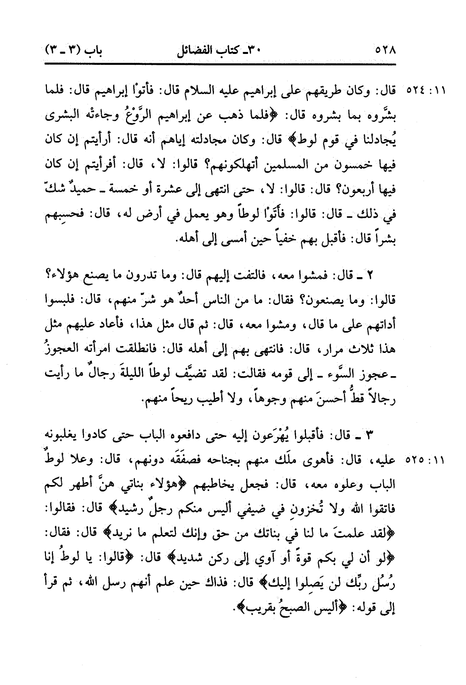 قَالَ : فَأَقْبَلُوا يُهْرَعُونَ إلَيْهِ حَتَّى دَافَعُوهُ الْبَابَ حَتَّى كَادُوا يَغْلِبُونَهُ عَلَيْهِ ، قَالَ : فَأَهْوَى مَلَكٌ مِنْهُمْ بِجَنَاحِهِ ،(11/524) فَصَفَقَهُ دُونَهُمْ ، قَالَ : وَعَلاَ لُوطٌ الْبَابَ وَعَلَوْه مَعَهُ ، قَالَ : فَجَعَلَ يُخَاطِبُهُمْ : {هَؤُلاَءِ بَنَاتِي هُنَّ أَطْهَرُ لَكُمْ فَاتَّقُوا اللَّهَ وَلاَ تُخْزُونِي فِي ضَيْفِي أَلَيْسَ مِنْكُمْ رَجُلٌ رَشِيدٌ} قَالَ : فَقَالُوا : {لَقَدْ عَلِمْتَ مَا لَنَا فِي بَنَاتِكَ مِنْ حَقٍّ وَإِنَّك لَتَعْلَمُ مَا نُرِيدُ} قَالَ : فَقَالَ : {لَوْ أَنَّ لِي بِكُمْ قُوَّةً ، أَوْ آوِي إلَى رُكْنٍ شَدِيدٍ} قَالَ : قَالُوا : {يَا لُوطُ إنَّا رُسُلُ رَبِّكَ لَنْ يَصِلُوا إلَيْك} قَالَ : فَذَاكَ حِينَ عَلِمَ أَنَّهُمْ رُسُلُ اللهِ ، ثُمَّ قَرَأَ إلَى قَوْلِهِ : {أَلَيْسَ الصُّبْحُ بِقَرِيبٍ}.