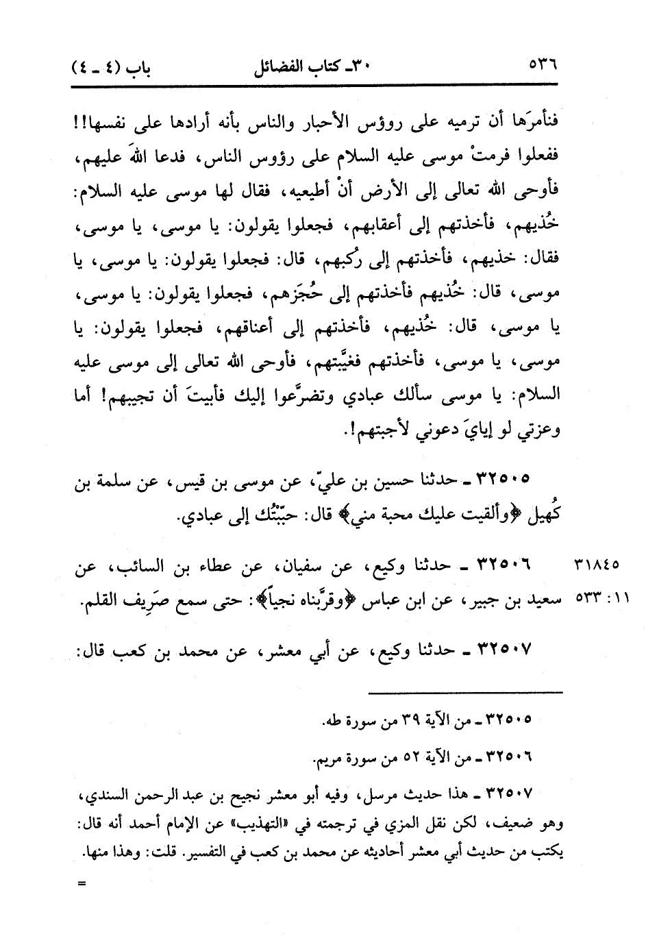 32505- حَدَّثَنَا حُسَيْنُ بْنُ عَلِيٍّ ، عَنْ مُوسَى بْنِ قَيْسٍ ، عَنْ سَلَمَةَ بْنِ كُهَيْلٍ : {وَأَلْقَيْت عَلَيْك مَحَبَّةً مِنِّي} قَالَ : حَبَّبْتُك إلَى عِبَادِي. (11/532).
