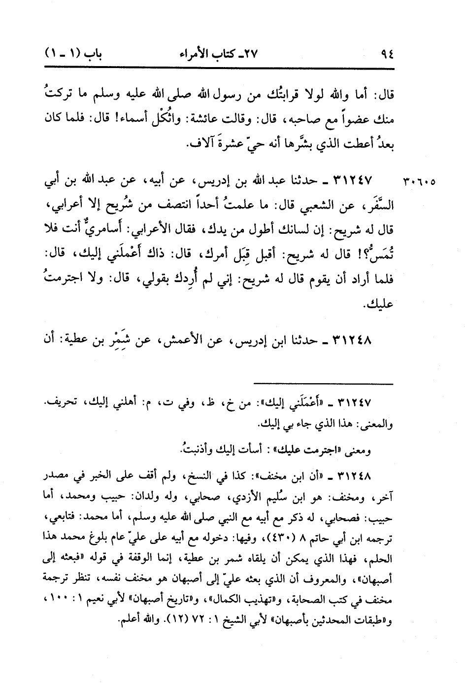 31248- حَدَّثَنَا ابْنُ إدْرِيسَ ، عَنِ الأَعْمَشِ ، عَنْ شَمْرِ بْنِ عَطِيَّةَ ؛ أَنَّ ابْنَ مِخْنَفٍ الأَزْدِيَّ جَلَسَ إلَى عَلِيٍّ ، قَالَ : فَقَالَ لَهُ عَلِيٌّ : اقْرَا ، فَقَرَأَ سُورَةَ الْبَقَرَةِ ، فَمَا فَرَغَ مِنْهَا حَتَّى شَقَّ عَليَّ ، قَالَ : فَبَعَثَهُ إِلَى أَصْبَهَانَ ، قَالَ : فَأَخَذَ مَا أَخَذَ وَحَمَلَ بَقِيَّةَ الْمَالِ إلَى مُعَاوِيَةَ.(11/109).