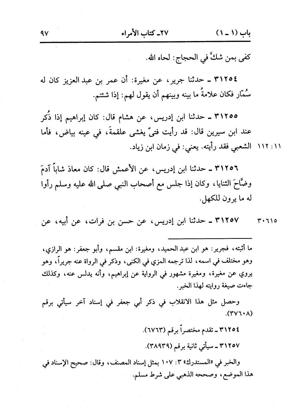 31255- حَدَّثَنَا ابْنُ إدْرِيسَ ، عَنْ هِشَامٍ ، قَالَ : كَانَ إبْرَاهِيمُ إذَا ذُكِرَ عِنْدَ ابْنِ سِيرِينَ ، قَالَ : قَدْ رَأَيْت فَتًى يَغْشَى عَلْقَمَةَ فِي عَيْنِهِ بَيَاضٌ فَأَمَّا الشَّعْبِيُّ فَقَدْ رَأَيْته. ، يَعْنِي فِي زَمَانِ ابْنِ زِيَادٍ.(11/111).
