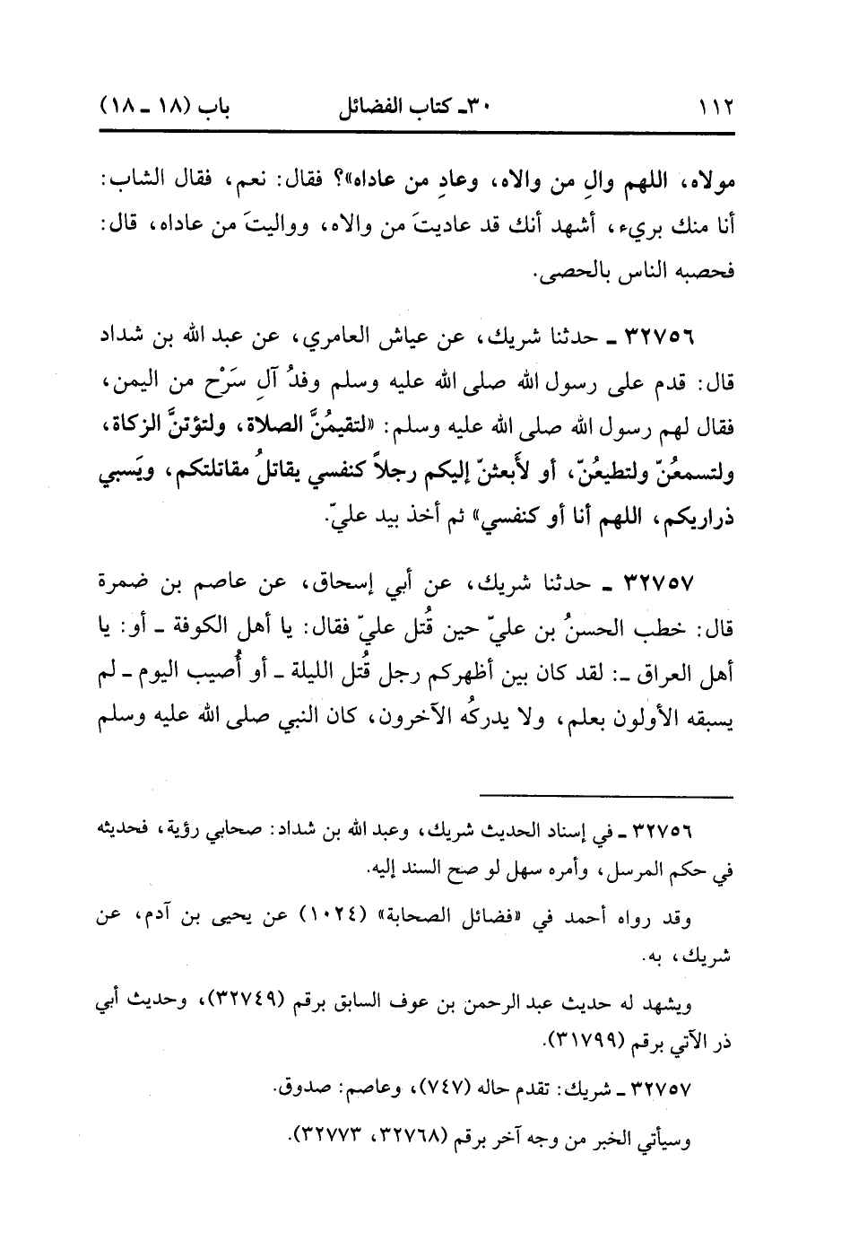 32756- حَدَّثَنَا شَرِيكٌ , عَنْ عَيَّاشٍ الْعَامِرِيِّ , عَنْ عَبْدِ اللهِ بْنِ شَدَّادٍ , قَالَ قَدِمَ عَلَى رَسُولِ اللهِ صَلَّى الله عَلَيْهِ وَسَلَّمَ وَفْدُ آل سَرْحٍ مِنَ الْيَمَنِ , فَقَالَ لَهُمْ رَسُولُ اللهِ صَلَّى الله عَلَيْهِ وَسَلَّمَ لَتُقِيمُنَّ الصَّلاةَ وَلَتُؤْتُنَّ الزَّكَاةَ وَلَتَسْمَعْن وَلَتُطِيعَنْ , أَوْ لأبْعَثَنَّ إلَيْكُمْ رَجُلاً كَنَفْسِي يُقَاتِلُ مُقَاتِلَتَكُمْ وَيَسْبِي ذَرَارِيَّكُمْ , اللَّهُمَّ أَنَا , أَوْ كَنَفْسِي , ثُمَّ أَخَذَ بِيَدِ عَلِيٍّ.
