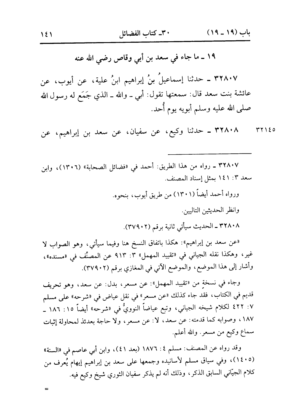 19- ما جاء فِي سعدِ بنِ أبِي وقّاصٍ رَضِيَ الله عَنْهُ.