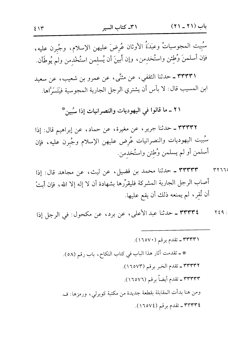 21- ما قالوا فِي اليهودِيّاتِ والنّصرانِيّات إذا سُبين.