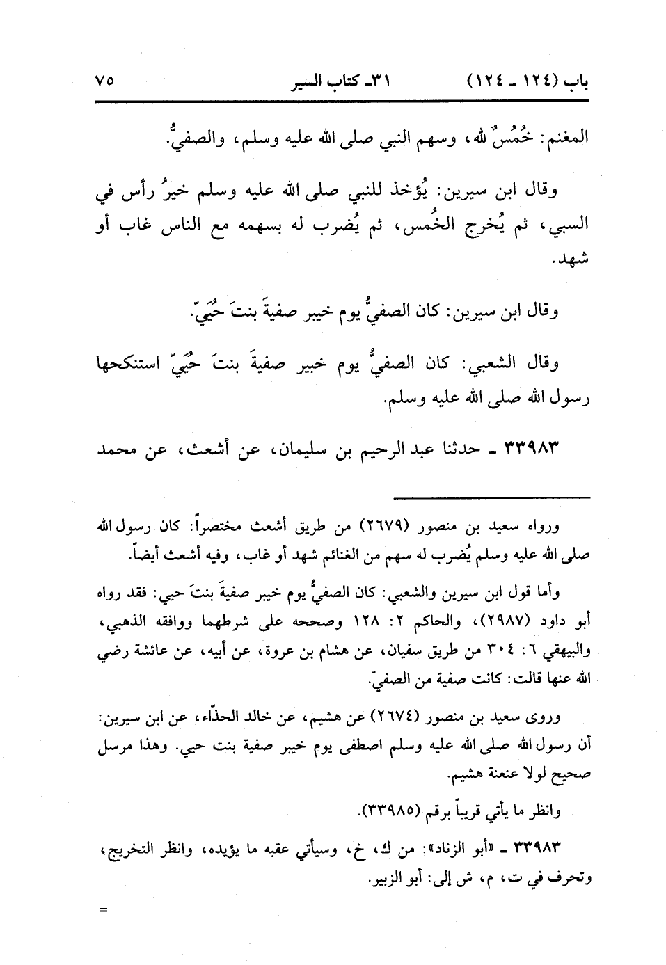 33982- حَدَّثَنَا أَبُو خَالِدٍ الأَحْمَرُ ، عَنْ أَشْعَثَ ، عَنْ مُحَمَّدٍ ، قَالَ : فِي الْمَغْنَمِ ؛ خُمُسٌ لِلَّهِ ،وَسَهْمٌ لِلنَّبِيِّ صَلَّى الله عَلَيْهِ وَسَلَّمَ وَالصَّفِيِّ.