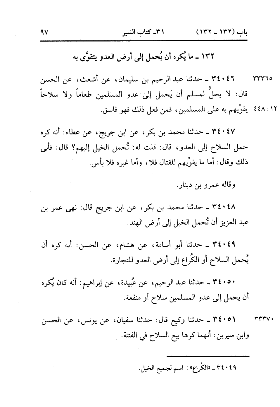 132- مَا يُكْرَه أَنْ يُحْمَل إِلَى أَرْضِ الْعَدُوِّ ، يَتَقَوَّى بِهِ.