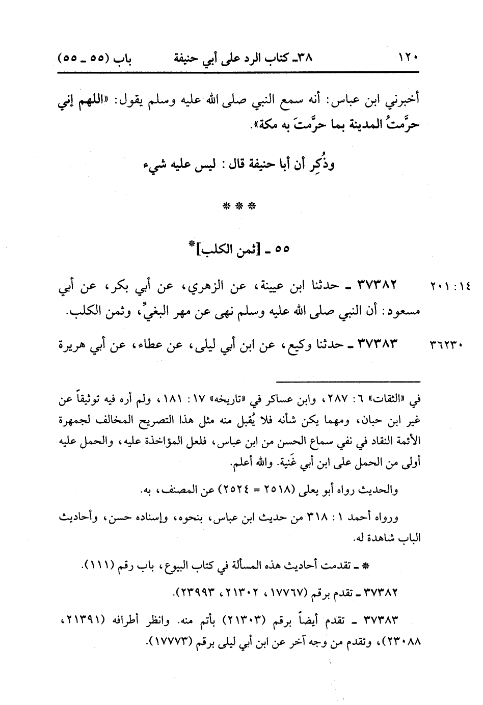 37383- حَدَّثَنَا وَكِيعٌ ، عَنِ ابْنِ أَبِي لَيْلَى ، عَنْ عَطَاءٍ ، عَنْ أَبِي هُرَيْرَةَ ، قَالَ : نَهَى رَسُولُ اللهِ صَلَّى الله عَلَيْهِ وَسَلَّمَ عَنْ مَهْرِ الْبَغِيِّ ، وَثَمَنِ الْكَلْبِ. (14/201).