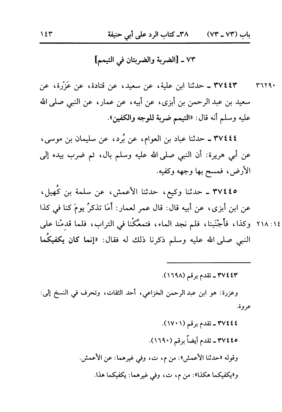 73- الضَّرْبَةُ وَالضَّرْبَتَانِ فِي التَّيَمُّمِ.