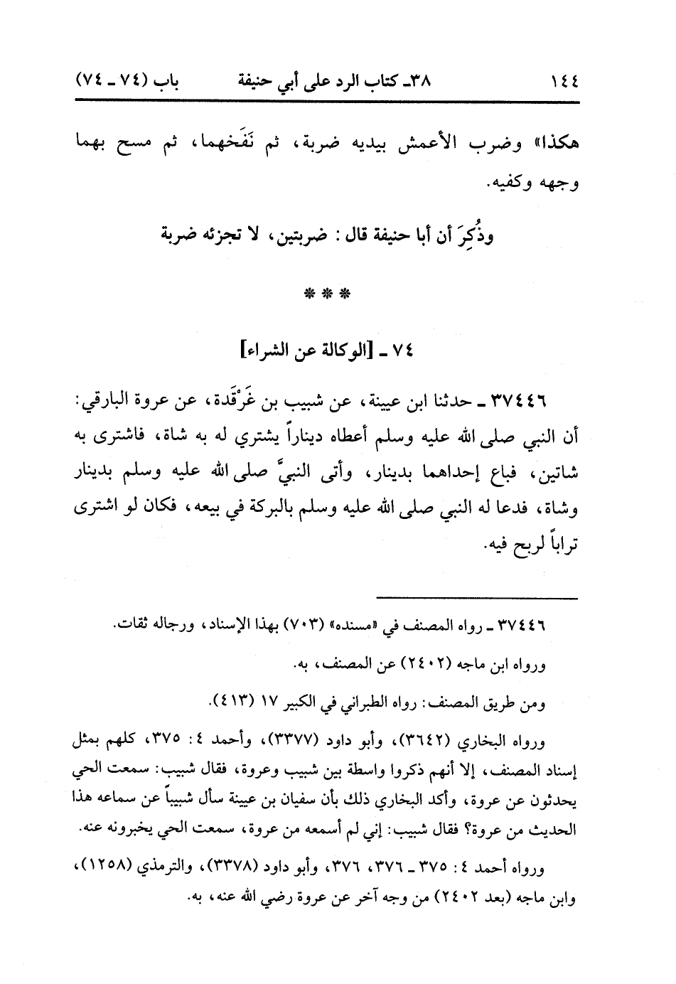74- الْوِكَالَهُ عَنِ الشِّرَاءِ.