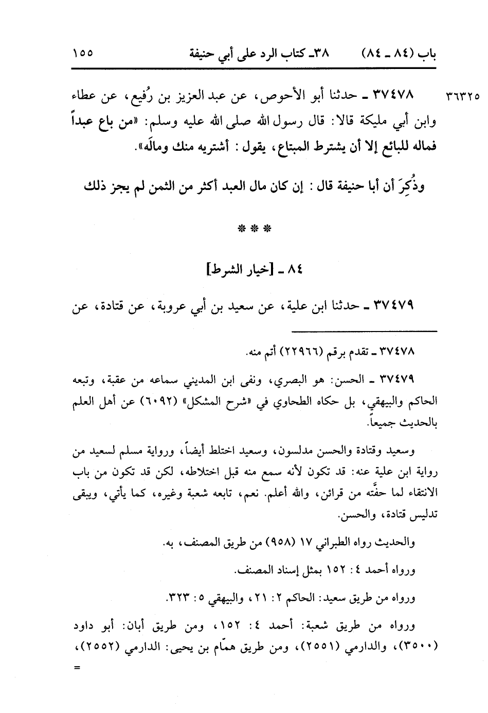 37478- حَدَّثَنَا أَبُو الأَحْوَصِِ ، عَنْ عَبْدِ الْعَزِيزِ بْنِ رُفَيْعٍ ، عَنْ عَطَاءٍ ، وَابْنِ أَبِي مُلَيْكَةَ ، قَالاَ : قَالَ رَسُولُ اللهِ صَلَّى الله عَلَيْهِ وَسَلَّمَ : مَنْ بَاعَ عَبْدًا فَمَالُهُ لِلْبَائِعِ ، إِلاَّ أَنْ يَشْتَرِطَ الْمُبْتَاعُ ، يَقُولُ : أَشْتَرِيهِ مِنْك وَمَالَهُ.