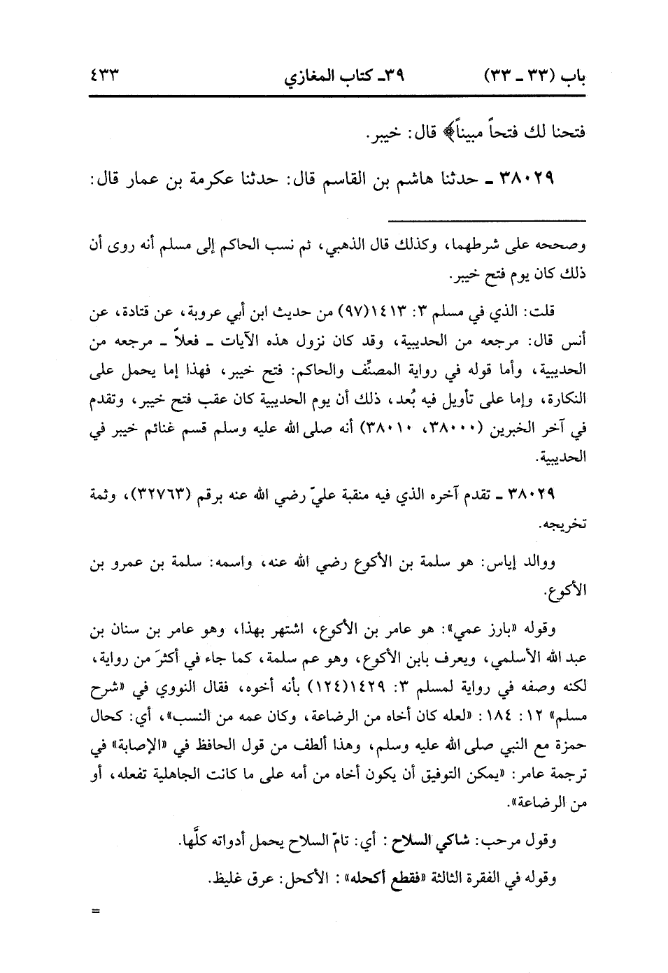 38028- حَدَّثَنَا وَكِيعٌ ، عَنْ أَبِي جَعْفَرٍ ، عَنْ قَتَادَةَ ، عَنْ أَنَسٍ ؛ {إِنَّا فَتَحْنَا لَك فَتْحًا مُبِينًا} قَالَ : خَيْبَرَ. (14/458).