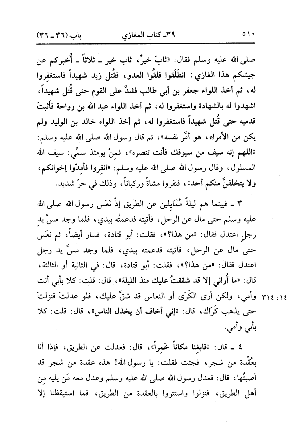 قَالَوا : يَا رَسُولَ اللهِ ، الْعَطَشُ ، قَالَ : لاَ عَطَشَ ، يَا أَبَا قَتَادَةَ ، أَرِنِي الْمَيْضَأَةَ ، قَالَ : فَأَتَيْتُهُ بِهَا ، فَجَعَلَهَا فِي ضِبْنِهِ ، ثُمَّ الْتَقَمَ فَمَهَا ، فَاَللَّهُ أَعْلَمُ أَنَفَثَ فِيهَا ، أَمْ لاَ ، ثُمَّ قَالَ : يَا أَبَا قَتَادَةَ ، أَرِنِي الْغُمَرَ عَلَى الرَّاحِلَةِ ، فَأَتَيْته بِقَدَحٍ بَيْنَ الْقَدَحَيْنِ ، فَصَبَّ فِيهِ ، فَقَالَ : اسْقِ الْقَوْمَ ،(14/514).