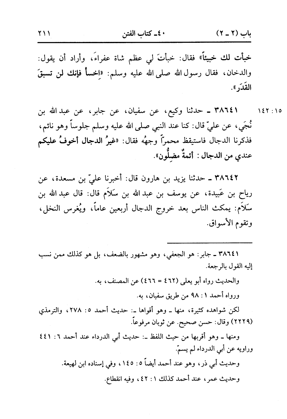 38642- حَدَّثَنَا يَزِيدُ بْنُ هَارُونَ , قَالَ : أَخْبَرَنَا عَلِيُّ بْنُ مَسْعَدَةَ ، عَنْ رِيَاحِ بْنِ عَبِيْدَةَ ، عَنْ يُوسُفَ بْنِ عَبْدِ اللهِ بْنِ سَلاَمٍ ، قَالَ : قَالَ عَبْدُ اللهِ بْنُ سَلاَمٍ : يَمْكُثُ النَّاسُ بَعْدَ خُرُوجِ الدَّجَّالِ أَرْبَعِينَ عَامًا , وَيُغْرَسُ النَّخْلُ وَتَقُومُ الأَسْوَاقُ. (15/142).