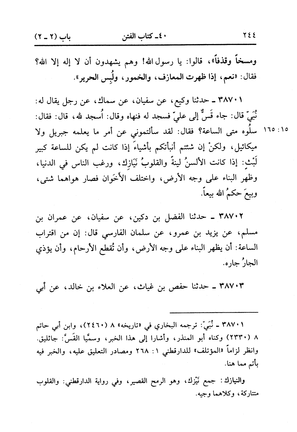 38702- حَدَّثَنَا الْفَضْلُ بْنُ دُكَيْنٍ ، عَنْ سُفْيَانَ ، عَنْ عِمْرَانَ بْنِ مُسْلِمٍ ، عَنْ يَزِيدَ بْنِ عَمْرٍو ، عَنْ سَلْمَانَ الْفَارِسِيِّ ، قَالَ : إِنَّ مِنَ اقْتِرَابِ السَّاعَةِ أَنْ يَظْهَرَ الْبِنَاءُ عَلَى وَجْهِ الأَرْضِ ، وَأَنْ تُقْطَعَ الأَرْحَامُ ، وَأَنْ يُؤْذِيَ الْجَارُ جَارَهُ.