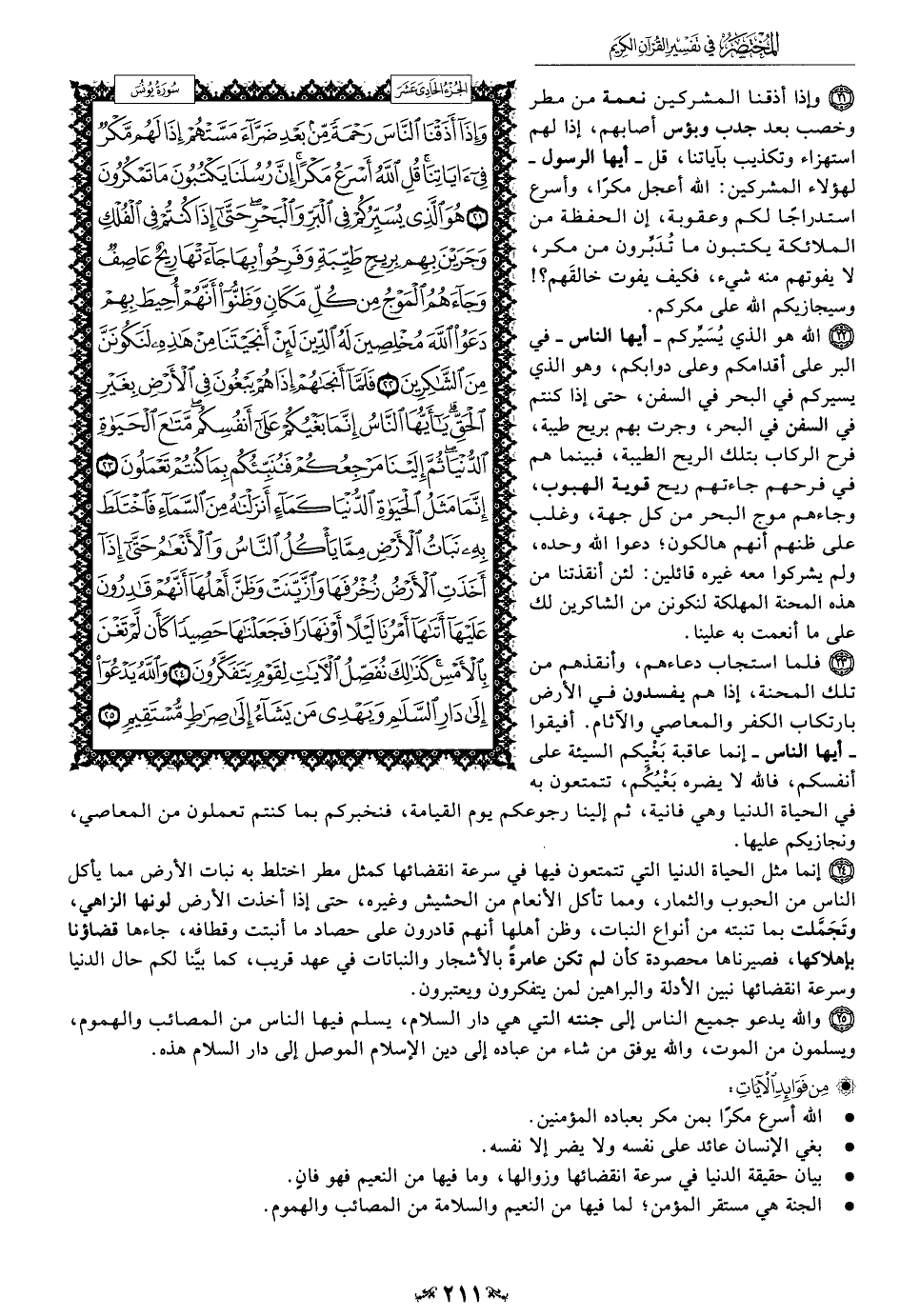 25 - والله يدعو جميع الناس إلى جنته التي هي دار السلام، يسلم فيها الناس من المصائب والهموم، ويسلمون من الموت، والله يوفق من شاء من عباده إلى دين الإسلام الموصل إلى دار السلام هذه.