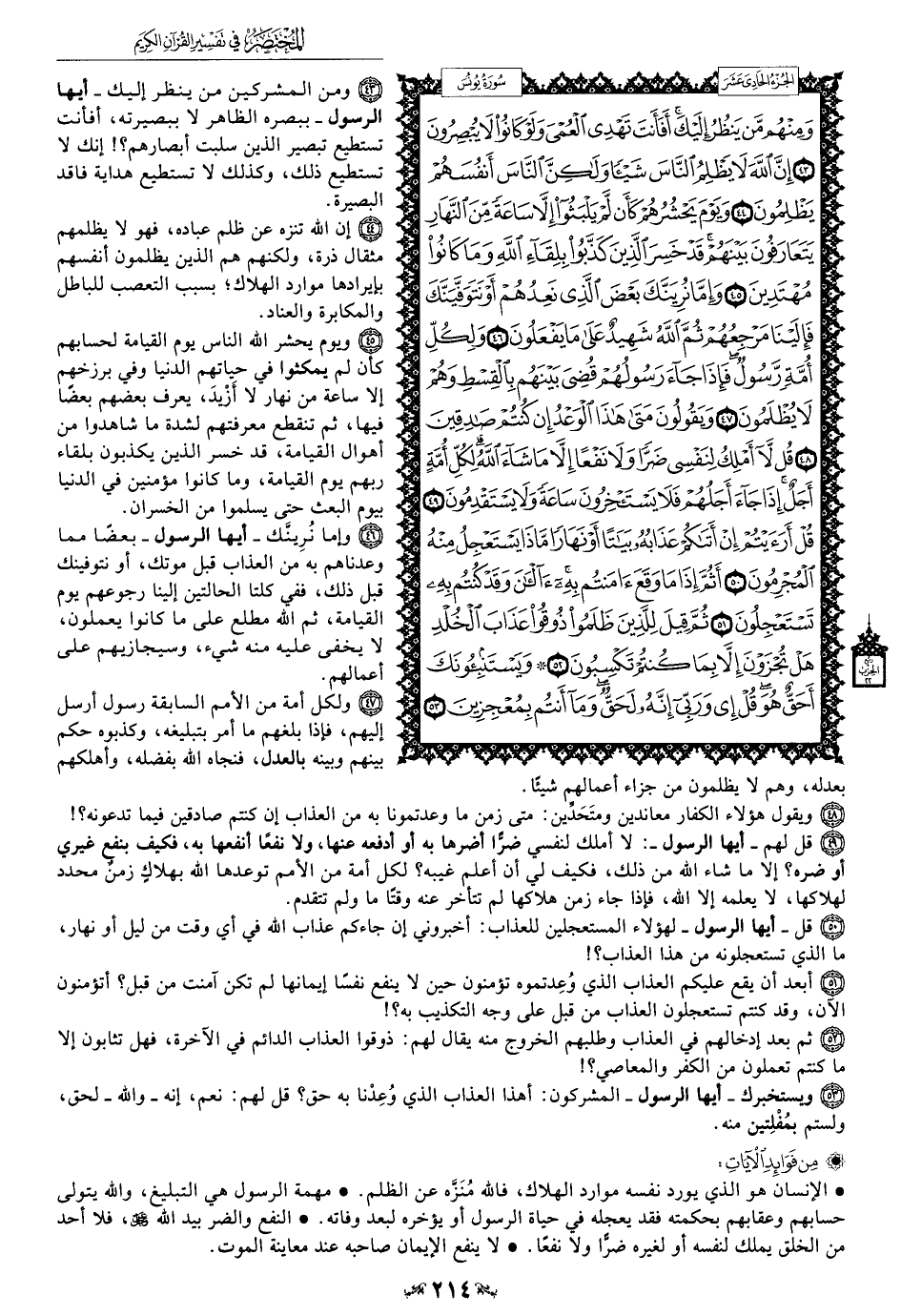 44 - إن الله تنزه عن ظلم عباده، فهو لا يظلمهم مثقال ذرة، ولكنهم هم الذين يظلمون أنفسهم بإيرادها موارد الهلاك؛ بسبب التعصب للباطل والمكابرة والعناد.