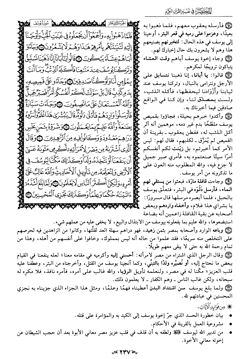 • من تدبير الله ليوسف عليه السلام ولطفه به أن قذف في قلب عزيز مصر معاني الأبوة بعد أن حجب الشيطان عن إخوته معاني الأخوة.