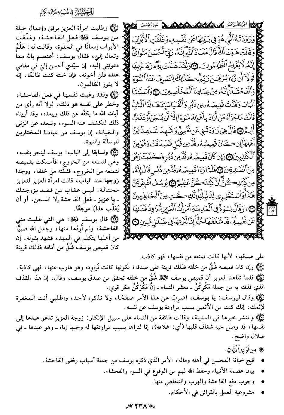 x• قبح خيانة المحسن في أهله وماله, الأمر الَّذي ذكره يوسف من جملة أسباب رفض الفاحشة.