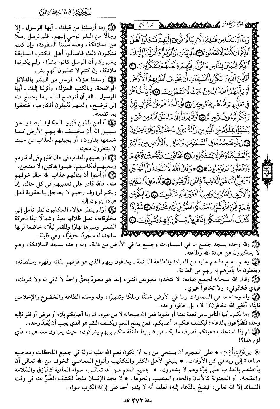 49 - ولله وحده يسجد جميع ما في السماوات وجميع ما في الأرض من دابة، وله وحده يسجد الملائكة، وهم لا يستكبرون عن عبادة الله وطاعته.