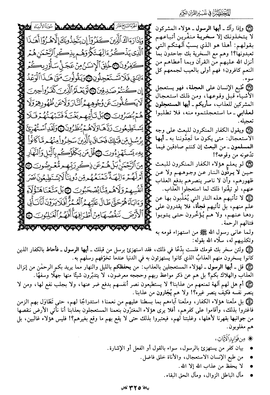 37 - طُبع الإنسان على العجلة، فهو يستعجل الأشياء قبل وقوعها، ومن ذلك استعجال المشركين للعذاب، سأريكم -أيها المستعجلون لعذابي- ما استعجلتموه منه، فلا تطلبوا تعجيله.