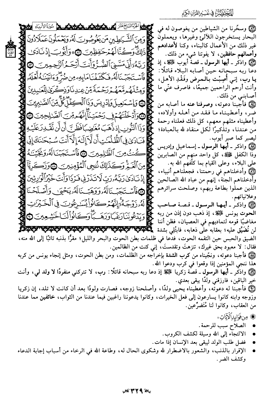 83 - واذكر -أيها الرسول- قصة أيوب عليه السلام، إذ دعا ربه سبحانه حين أصابه البلاء قائلًا: يا رب، إني أُصِبْت بالمرض وفَقْدِ الأهل، وأنت أرحم الراحمين جميعًا، فاصرف عني ما أصابني من ذلك.