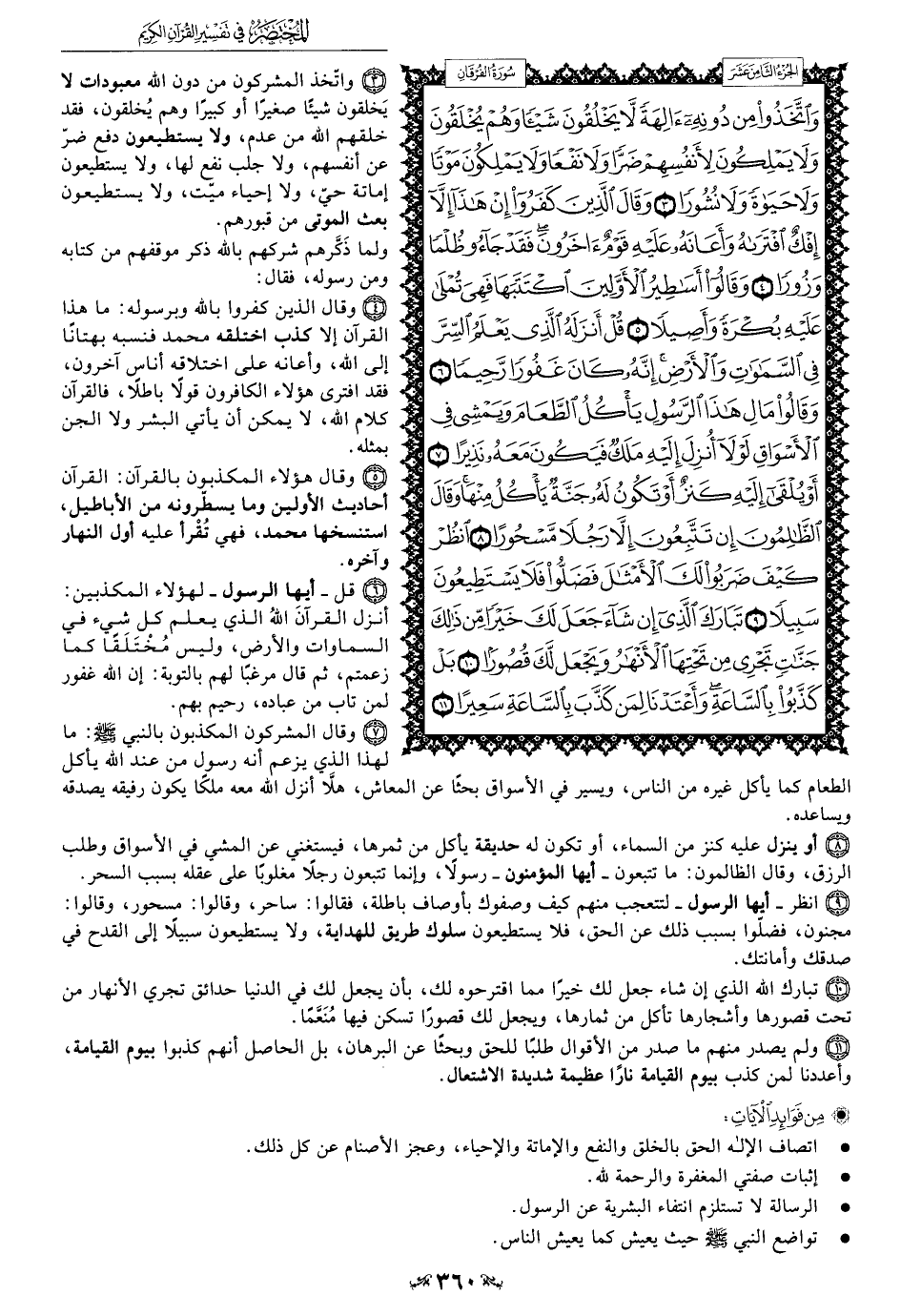 3 - واتّخذ المشركون من دون الله معبودات لا يَخلقون شيئًا صغيرًا أو كبيرًا وهم يُخلقون، فقد خلقهم الله من عدم، ولا يستطيعون دفع ضرّ عن أنفسهم، ولا جلب نفع لها، ولا يستطيعون إماتة حيّ، ولا إحياء ميّت، ولا يستطيعون بعث الموتى من قبورهم.