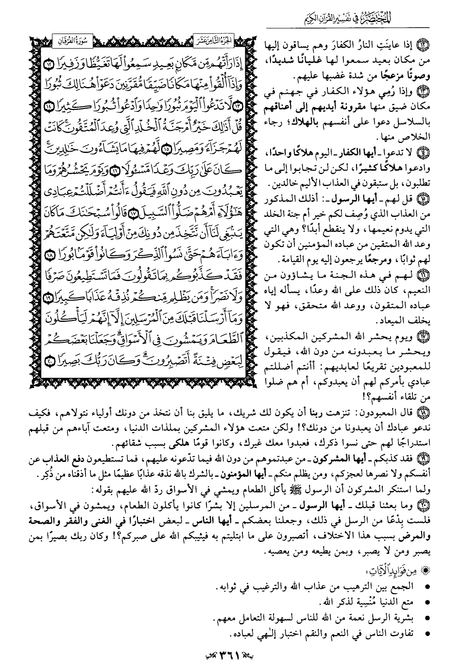 18 - قال المعبودون: تنزهت ربنا أن يكون لك شريك، ما يليق بنا أن نتخذ من دونك أولياء نتولاهم، فكيف ندعو عبادك أن يعبدونا من دونك؟! ولكن متعت هؤلاء المشركين بملذات الدنيا، ومتعت آباءهم من قبلهم استدراجًا لهم حتَّى نسوا ذكرك، فعبدوا معك غيرك، وكانوا قومًا هلكى بسبب شقائهم.