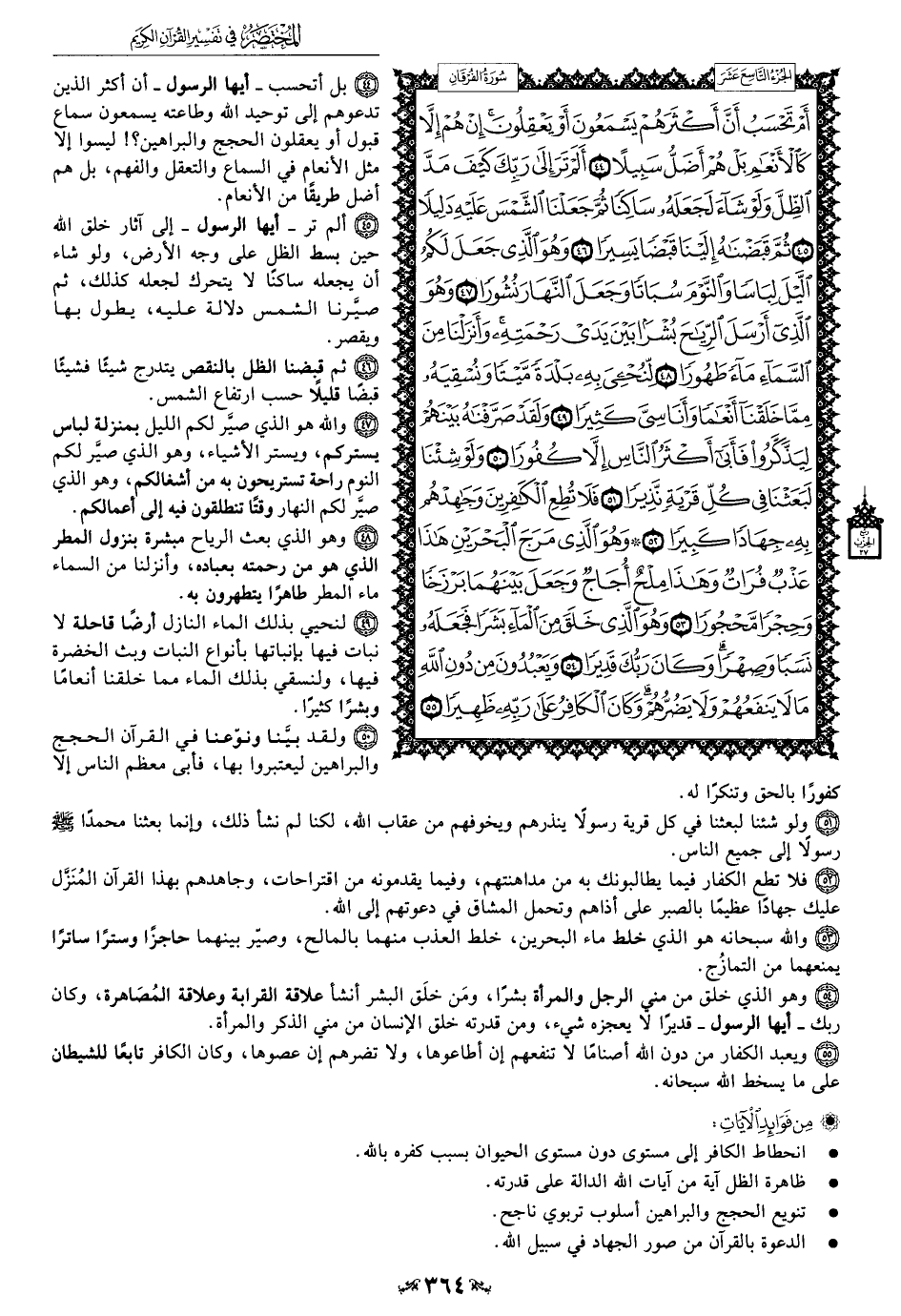 51 - ولو شئنا لبعثنا في كل قرية رسولًا ينذرهم ويخوفهم من عقاب الله، لكنا لم نشأ ذلك، وإنما بعثنا محمدًا - صلى الله عليه وسلم - رسولًا إلى جميع الناس.