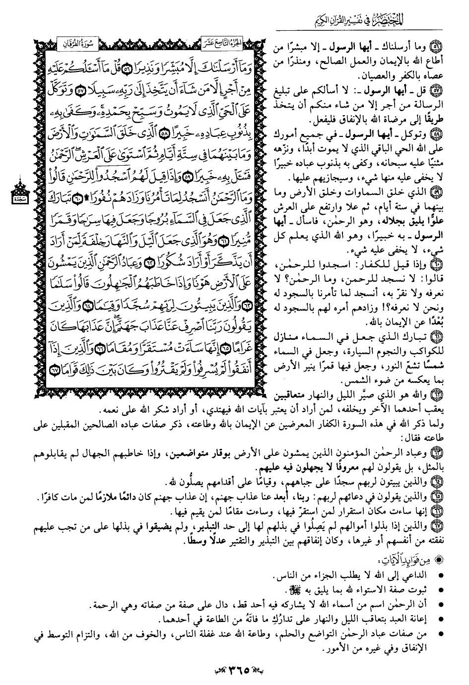 • من صفات عباد الرحمن التواضع والحلم، وطاعة الله عند غفلة الناس، والخوف من الله، والتزام التوسط في الإنفاق وفي غيره من الأمور.