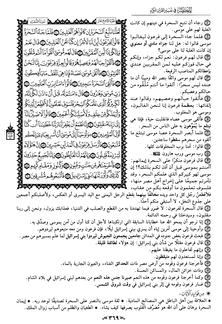 49 - قال فرعون منكرًا على السحرة إيمانهم: أآمنتم بموسى قبل أن آذن لكم بذلك؟! إن موسى لهو كبيركم الَّذي علمكم السحر، وقد تآمرتم جميعًا على إخراج أهل مصر منها، فلسوف تعلمون ما أوقعه بكم من عقاب، فلأقطعنّ رجْل كل واحد ويده مخالفًا بينهما بقطع الرجل اليمنى مع اليد اليسرى أو العكس، ولأصلبنكم أجمعين على جذوع النخل، لا أستبقي منكم أحدًا.