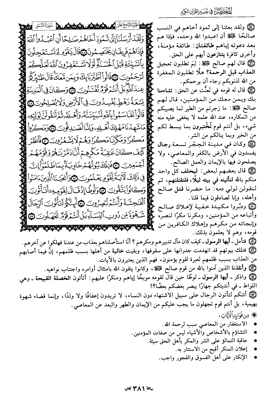 48 - كان في مدينة الحِجْر تسعة رجال يفسدون في الأرض بالكفر والمعاصي، ولا يصلحون فيها بالإيمان والعمل الصالح.