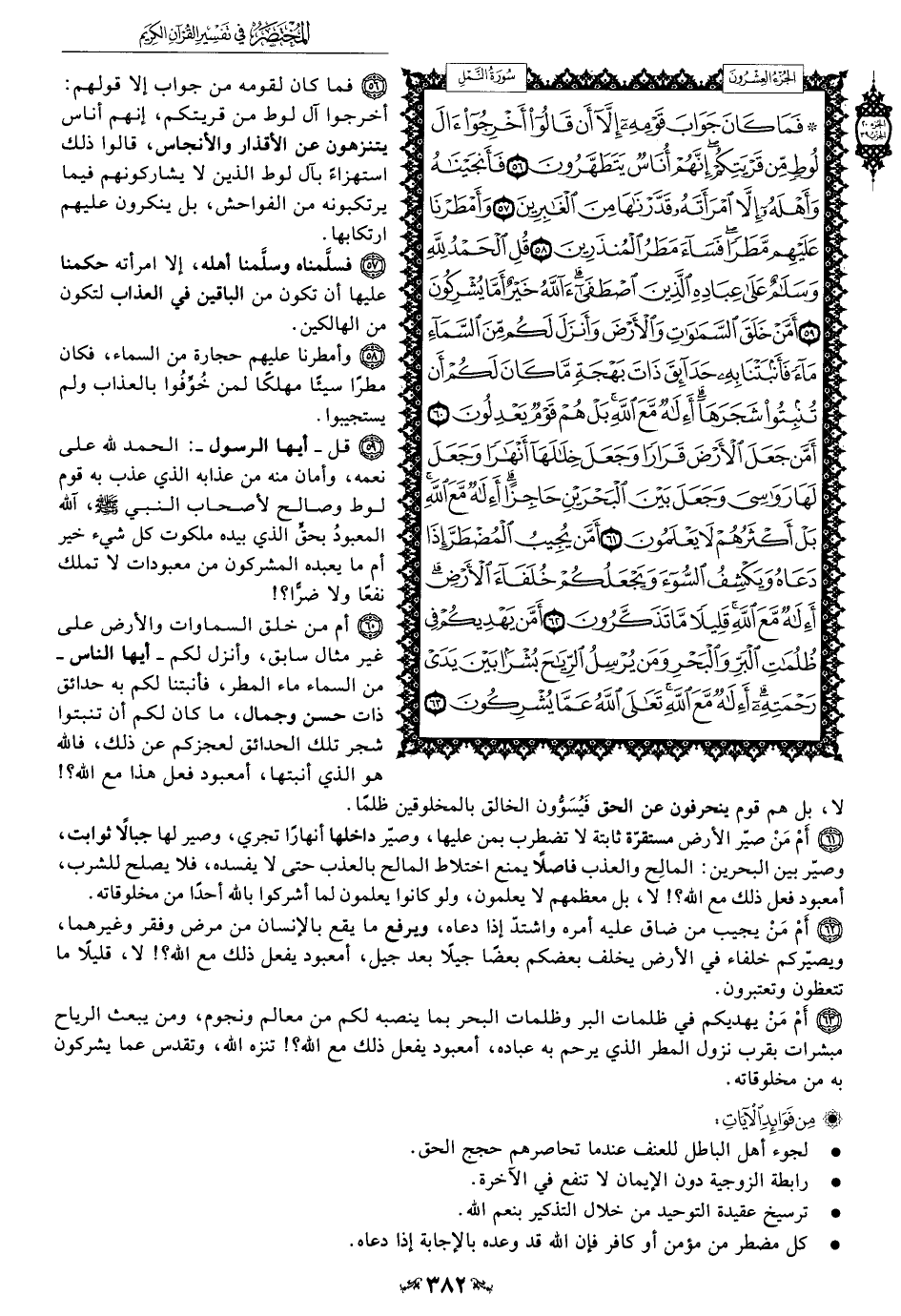 61 - أَمْ مَنْ صيّر الأرض مستقرّة ثابتة لا تضطرب بمن عليها، وصيّر داخلها أنهارًا تجري، وصير لها جبالًا ثوابت، وصيّر بين البحرين: المالِح والعذب فاصلًا يمنع اختلاط المالح بالعذب حتَّى لا يفسده، فلا يصلح للشرب، أمعبود فعل ذلك مع الله؟! لا، بل معظمهم لا يعلمون، ولو كانوا يعلمون لما أشركوا بالله أحدًا من مخلوقاته.