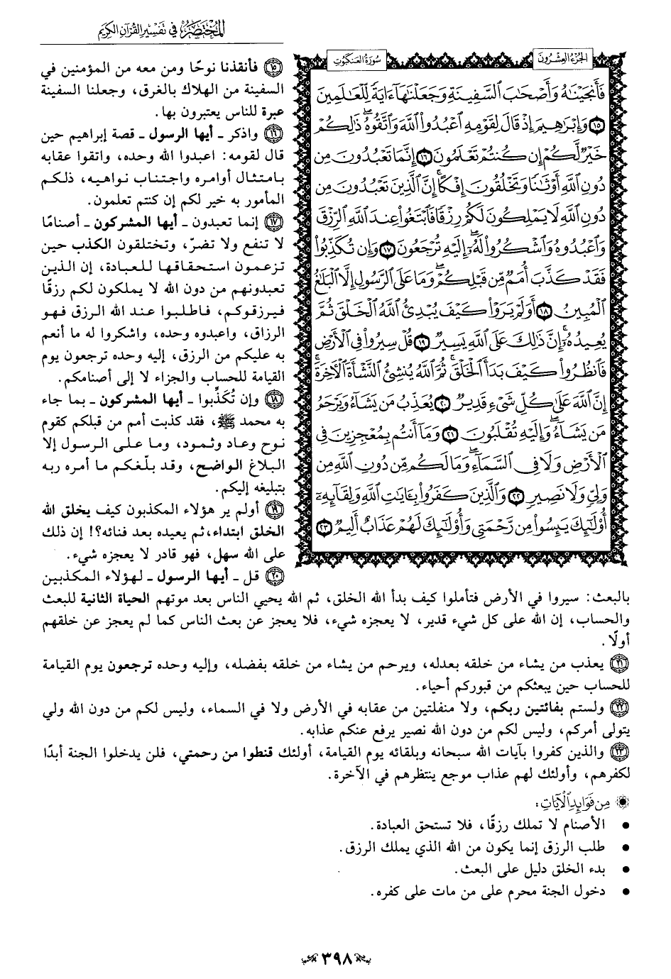 15 - فأنقذنا نوحًا ومن معه من المؤمنين في السفينة من الهلاك بالغرق، وجعلنا السفينة عبرة للناس يعتبرون بها.
